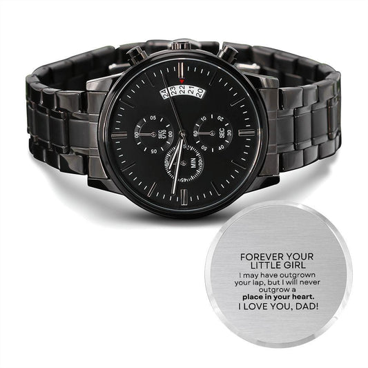 FOREVER YOUR LITTLE GIRL | ENGRAVED BLACK CHRONOGRAPH WATCH